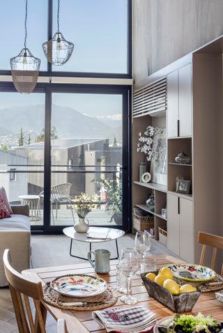 Arriendo de casas amobladas integradas al paisaje, con luz natural y vistas a la cordillera.