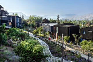 Parques de árboles nativos, pasarelas y la cordillera siempre presente.